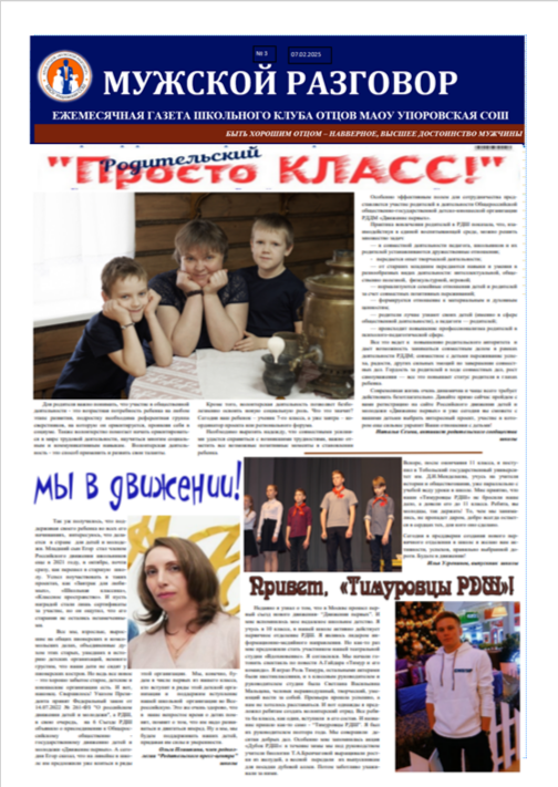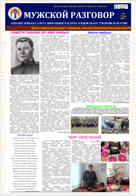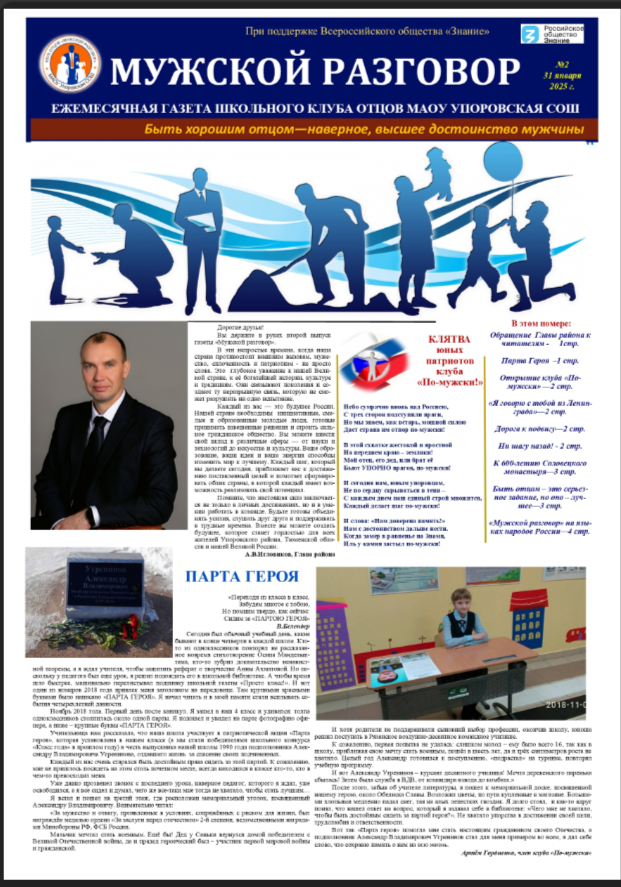Ежемесячная газета школьного клуба отцов МАОУ Упоровская СОШ "Мужской разговор"